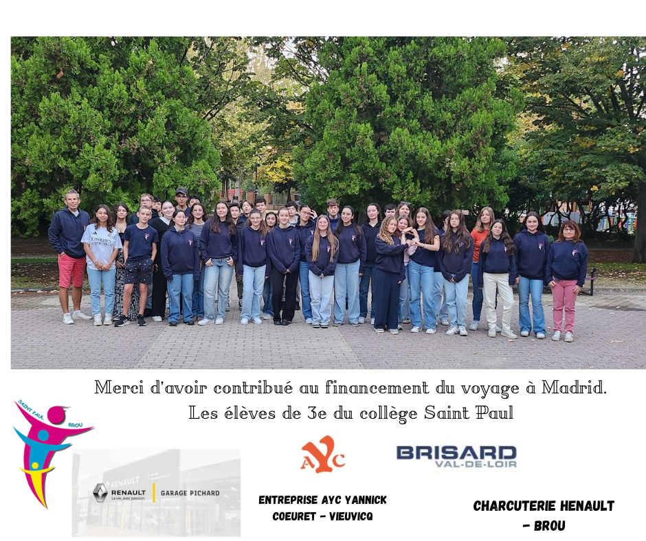 Merci à tous pour le financement du voyage en Espagne des 3èmes